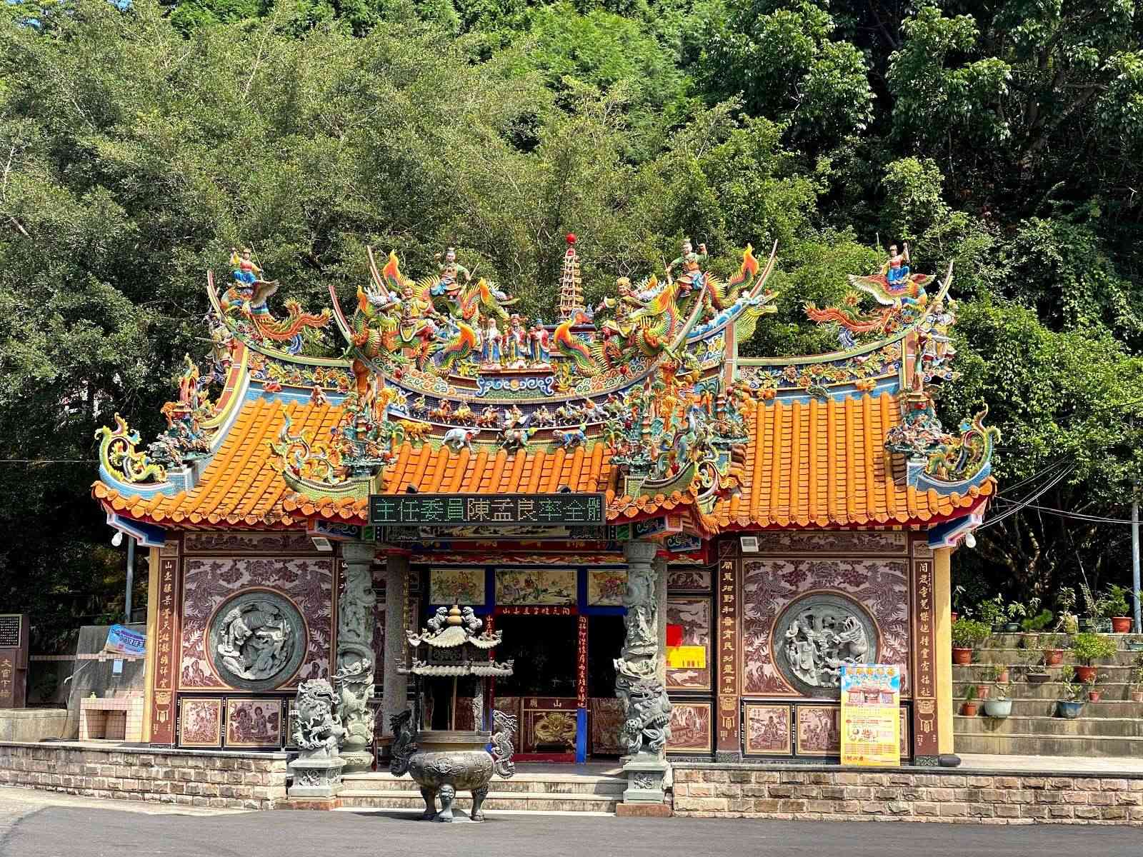 位於南投縣鹿谷鄉永隆村上的開山廟,劇相傳是鄭成功部將到鳳凰谷地區開墾,當地居民為感念部將恩德,便於清光緒9年(西元1883年)立廟供奉,主祀「開山公」。並於民國26年重修,56年重建正殿,雖然廟宇規模雖不大,但神威靈驗,香火鼎盛,每年的農曆2月2日廟會總會非常熱鬧,因為是主神誕辰。此外,廟的後方是麒麟山,自石階步道可以到山頂瞭望台,遠眺麒麟潭、凍頂山、茶山相映美景。