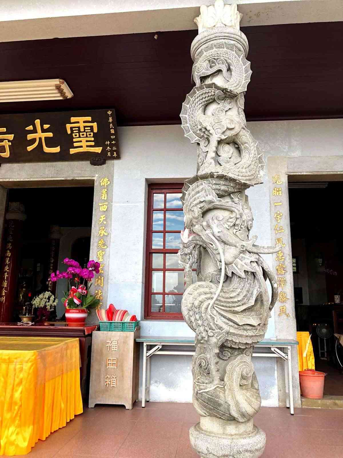 位於南投縣國姓鄉的靈光寺,是一間古樸清幽的佛寺,其所有的牆柱都是以巨大的石塊堆築而成,極具特色而讓人印象深刻。